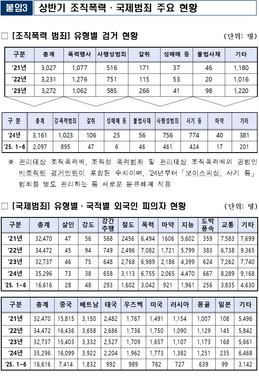 * 하반기 조폭·국제범죄 집중단속 추진(’25.8.11.∼’26.1.31.)