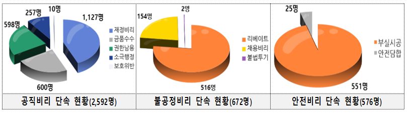 ①공직비리 485명(구속15) ②불공정비리 292명(구속14) ③안전비리 476명 송치(구속2)