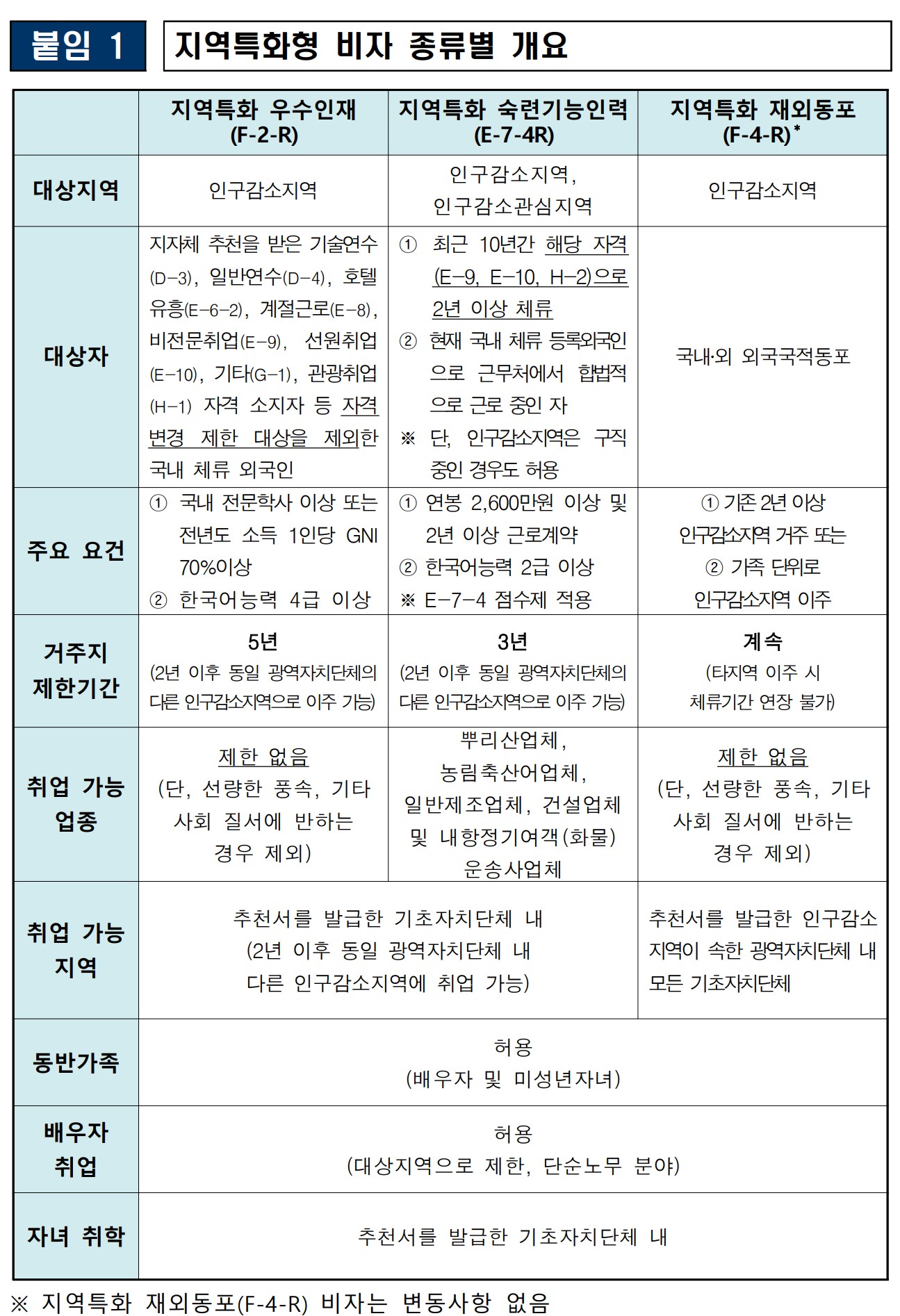 지역특화 우수인재(F-2-R) 비자 발급 요건 개선