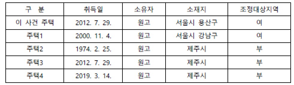 나. 이 사건 주택 양도 당시 원고 세대의 주택 소유현황은 다음과 같다.
