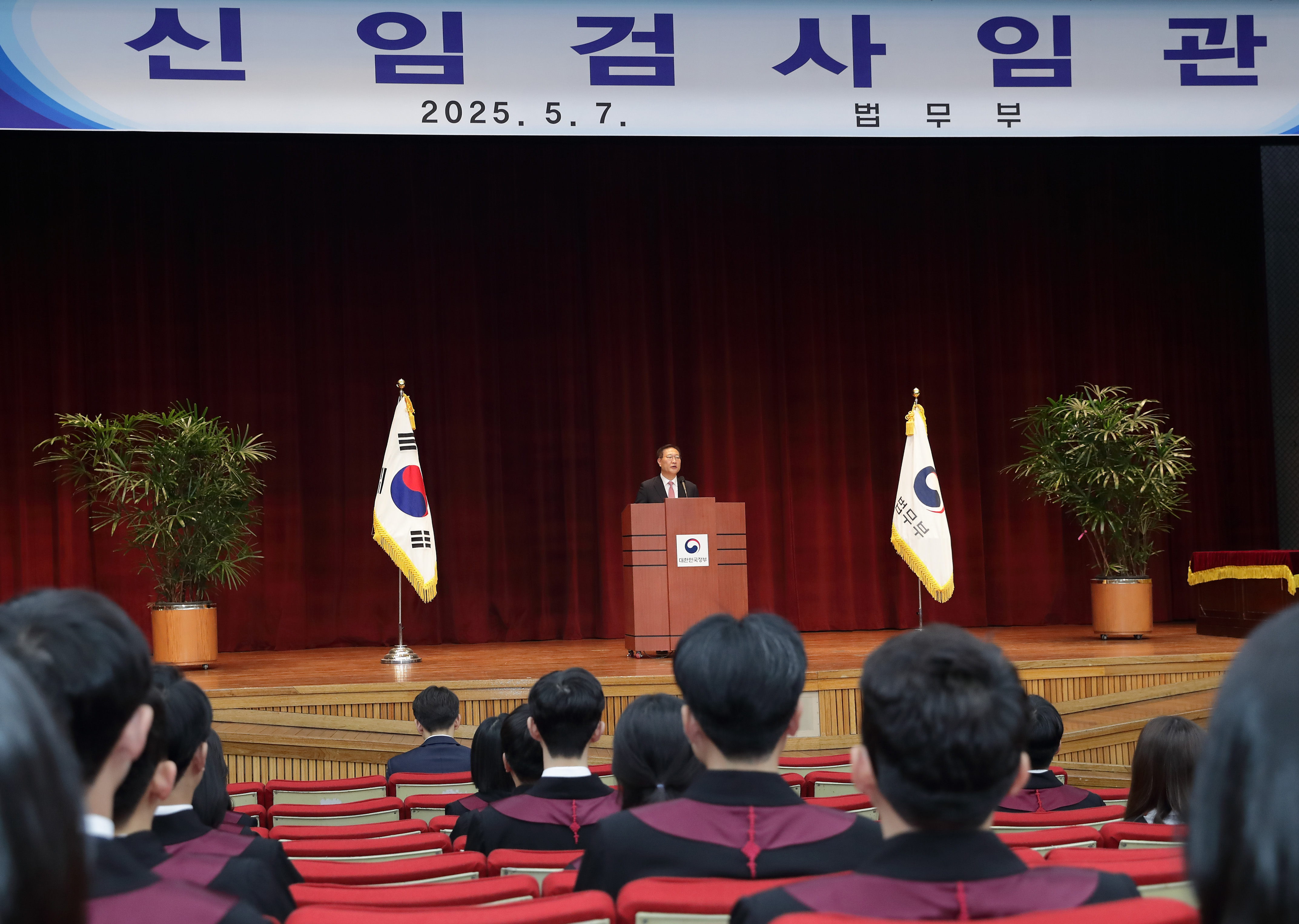 ❍법무부는 2025. 5. 7.(수) 14:00 법학전문대학원 출신 제14회 변호사시험 합격자 90명을 검사로 신규 임용하며 임관식을 거행하였습니다.