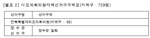 ○ 다만 전라북도의회와 전북특별자치도의회에 해당하는 선거구구역표 전체가 불가분의 일체라는 점을 고려해, 이 사건 선거구구역표 중 전라북도의회와 전북특별자치도의회의원 선거구역 전체에 대하여 헌법불합치 결정을 선고하면서 법의 공백 우려를 고려해 2026. 2. 19.을 시한으로 개정할 때까지 계속 적용을 명하였다.