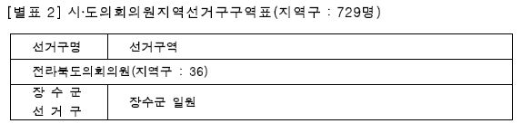 ○ 이 사건 심판대상은, 구 공직선거법(2022. 4. 20. 법률 제18841호로 개정되고, 2023. 12. 26. 법률 제19839호로 개정되기 전의 것) 제26조 제1항 [별표 2] 시․도의회의원지역선거구구역표 중 ‘전라북도의회의원’ 선거구역 내 ‘장수군 선거구’ 부분, 공직선거법(2023. 12. 26. 법률 제19839호로 개정된 것) 제26조 제1항 [별표 2] 시․도의회의원지역선거구구역표 중 ‘전북특별자치도의회의원’